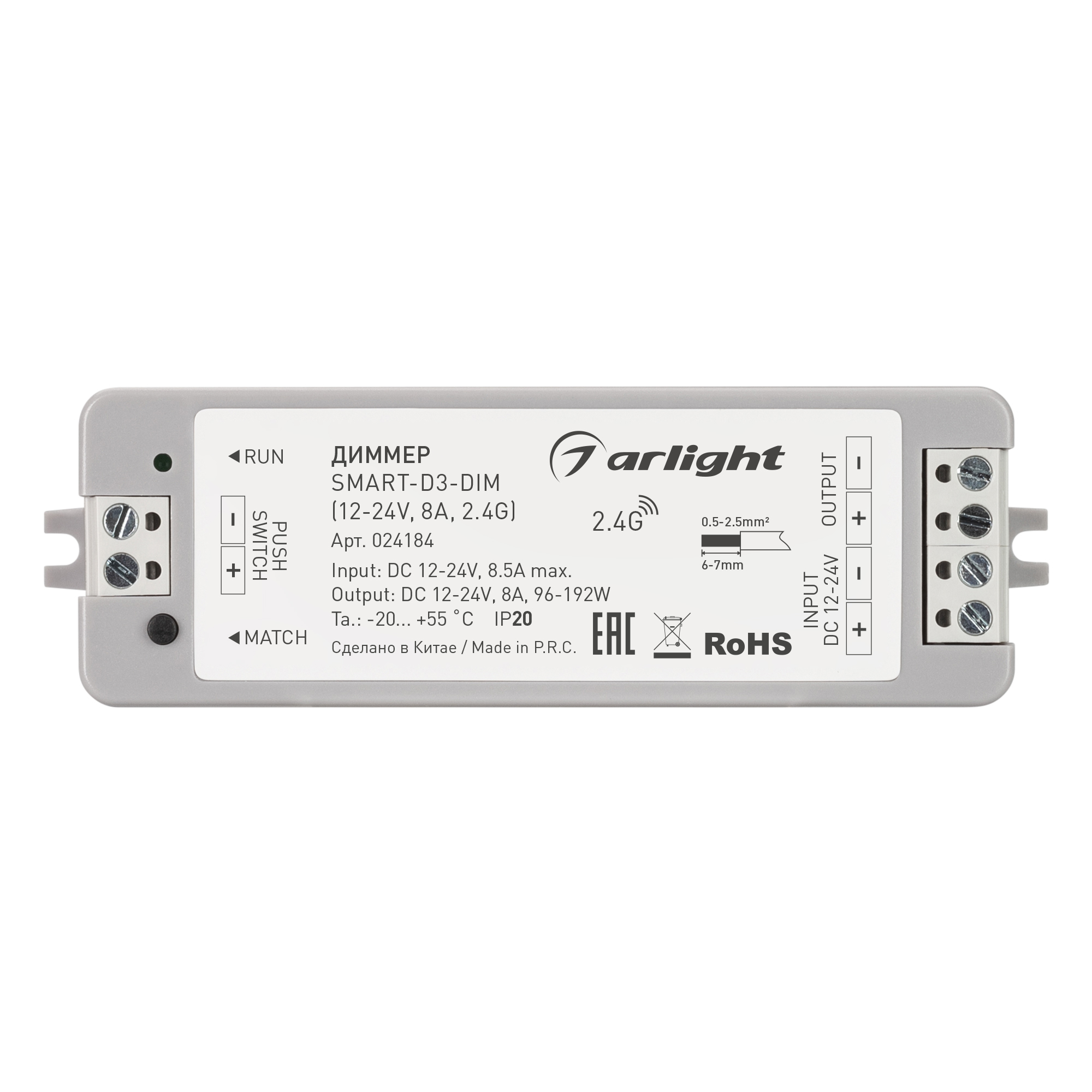 Диммер SMART-D3-DIM (12-24V, 8A, 2.4G) (Arlight, IP20 Пластик, 5 лет) 024184 в Москве