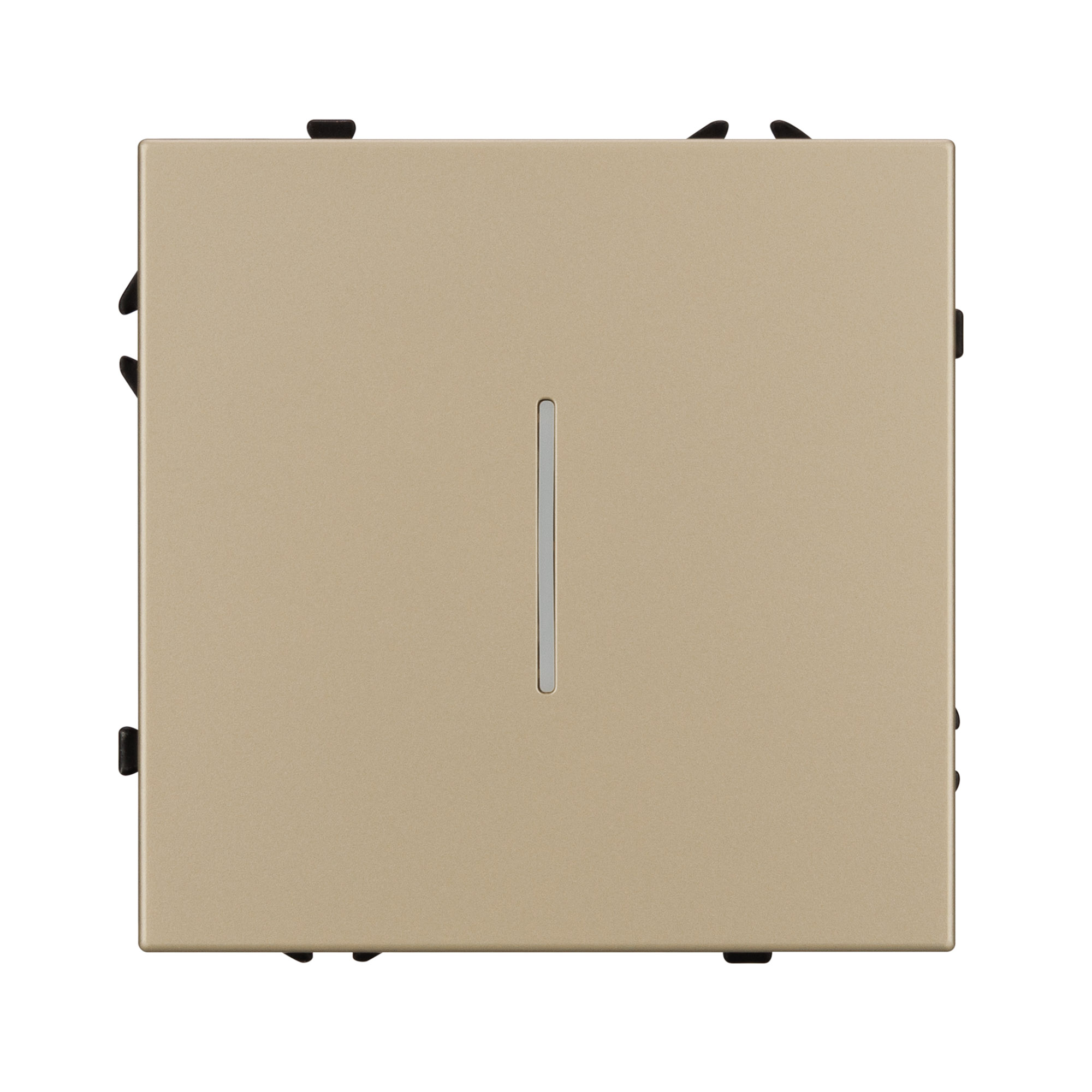 Строгие геометрические линии гармонично сочетаются с функциональностью продуманных механизмов, создавая идеальное решение для дизайн-проектов, где важны как эстетика, так и практичность. Механизм выключателя света совместим с рамками серии NOBE, создает утонченный минималистичный вид. Скрытый тип монтажа позволяет гармонично встроить в интерьер любого современного дизайн-проекта. Видимая часть механизма выполнена из высококачественного пластика золотого цвета и имеет Soft-Touch покрытие, что придает изделию приятные тактильные ощущения и стильный внешний вид. Соединение посредством быстрозажимных контактов, позволяет надежно подсоединить механизм выключателя к питающим элементам, минимизируя затраченное время на монтаж. А усиленные распорные лапки двойного захвата надежно фиксируют механизм в установочном подрозетнике круглого сечения диаметром 60мм. Суппорт окрашен в черный матовый цвет под основу механизма и выполнен из металла толщиной 1,5мм, что обеспечивает безопасность и уверенность в установке. На каждой стороне суппорта размещены фиксирующие элементы, позволяющие комбинировать механизмы в системы до 5 шт как горизонтально, так и вертикально.