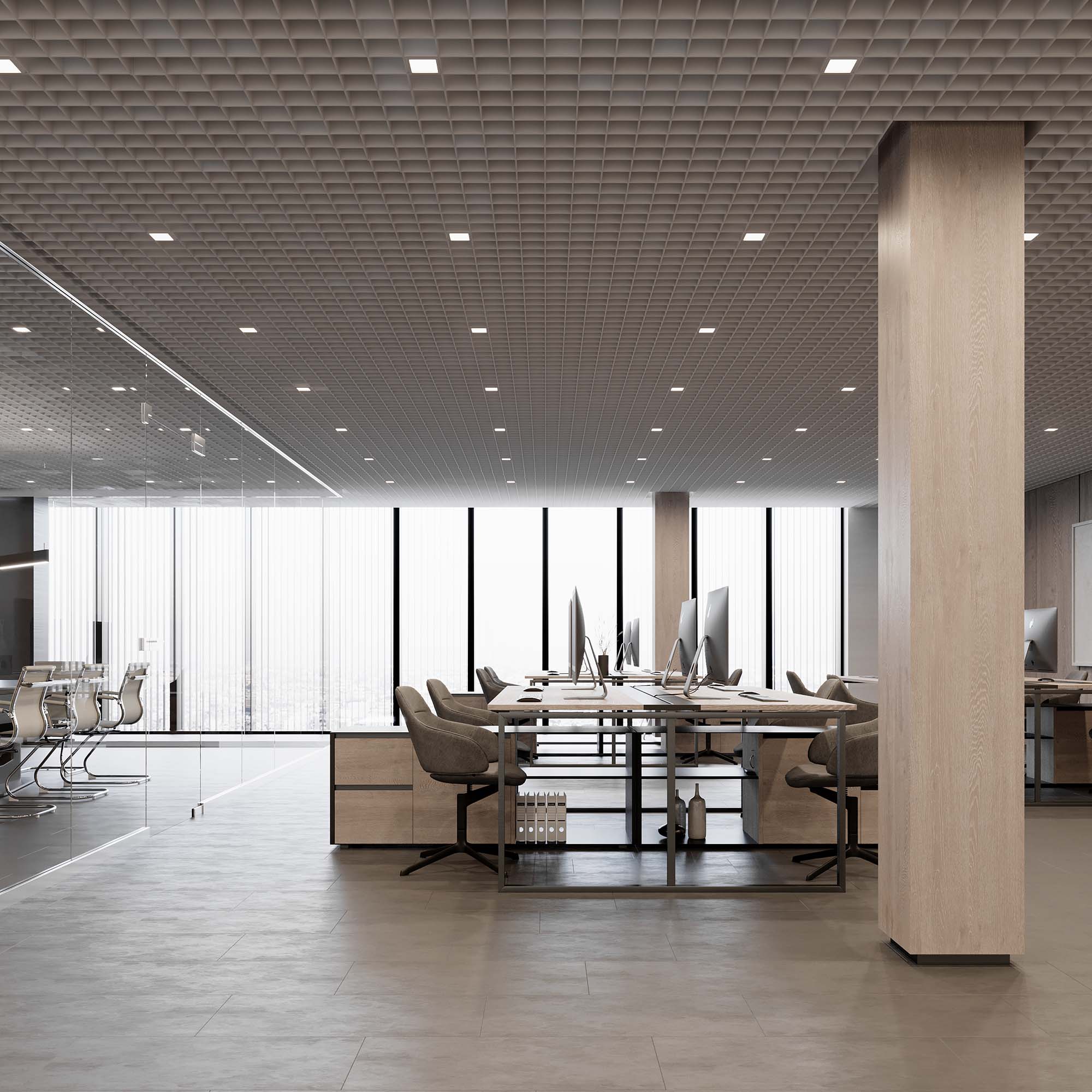 Встраиваемый светильник даунлайт для установки в потолки Грильято с размером ячейки 100х100 мм и высотой направляющих 30, 40 или 50 мм. Мощность 6 Вт, св. поток 570 лм, 95 лм/Вт, тёплый 3000 K, CRI>90, угол 90°, напряжение питания 230 В. Серый квадратный корпус из алюминия, степень защиты IP40. Размер: длина 90 мм, ширина 90 мм, высота 40 мм. Монтаж встраиваемый, установочное отверстие: длина 90 мм, ширина 90 мм. Драйвер 30-40 В, 150 мА, пульсация <2%.